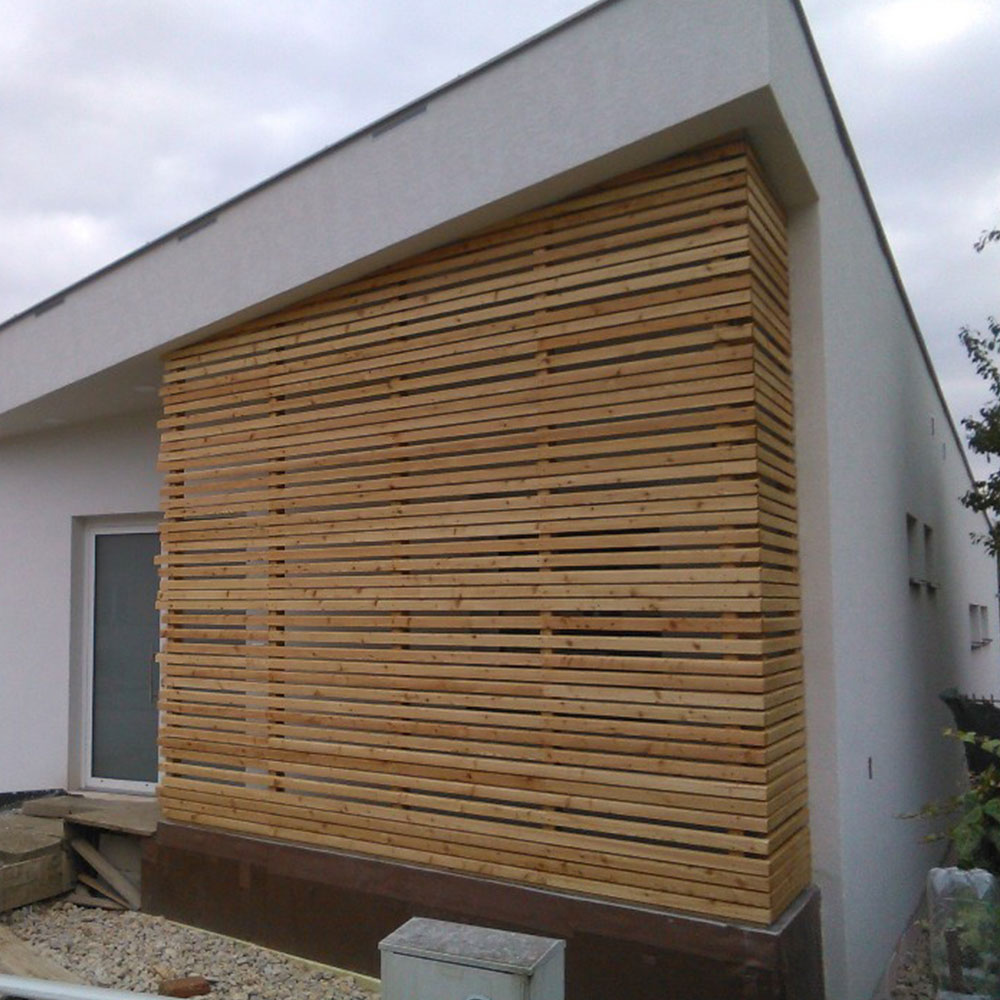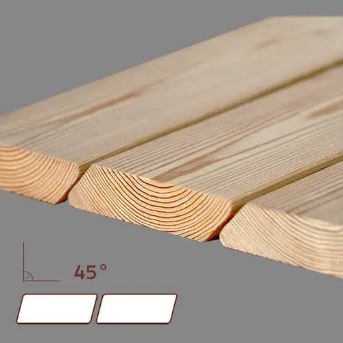 Rombus profil skosený červený smrek, kvalita A/B. Dodávané v prírodnom (neupravovanom) stave. Obe bočné strany sú zrazené pod uhlom XX° a všetky štyri hrany sú jemne zaoblené, čo zaručuje elegantný vzhľad a bezpečnú manipuláciu. Uvedená šírka udáva celkovú šírku laty (meranú od špičky po špičku). Pri montáži na podkladovú konštrukciu je potrebné dodržať rovnomerné medzery, ktoré by nemali presiahnuť 1,5 cm.